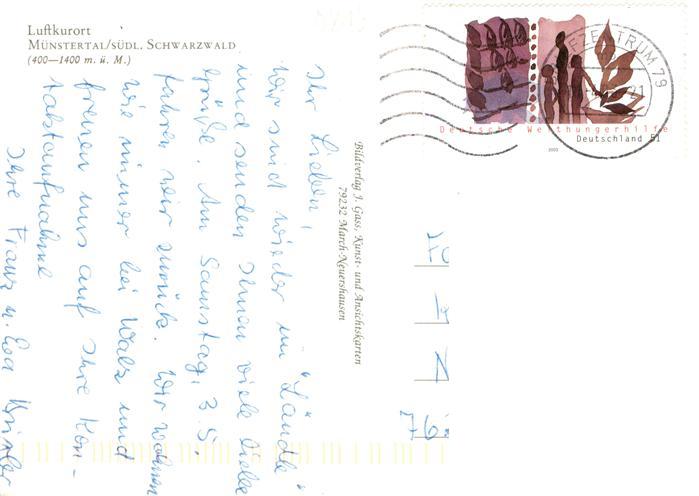 73929608 alte Postkarte Muenstertal Schwarzwald Fliegeraufnahme postalisch gelaufen Erhaltung siehe scans [WerneD78] KatCode: 11110008315130