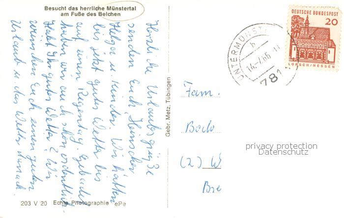 73778134 alte Postkarte Muenstertal Schwarzwald Fliegeraufnahme postalisch gelaufen Erhaltung siehe scans [WerneD78] KatCode: 11110008315130
