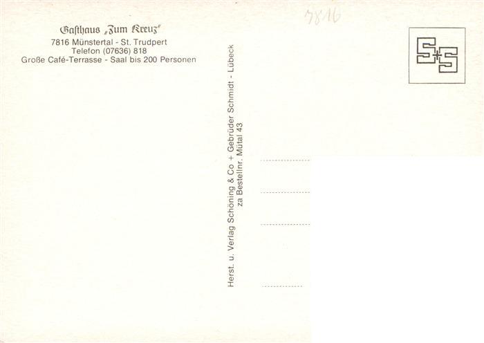 73929612 Muenstertal Schwarzwald Gasthaus zum Kreuz Gaststube St Trudpert postalisch nicht gelaufen Erhaltung siehe scans [WerneD78] KatCode: 11110008315130
