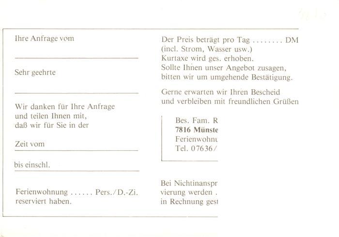 73934560 Muenstertal Schwarzwald Haus Anna Scharfenstein Oberes Muenstertal Aufenthaltsraum Zimmer postalisch nicht gelaufen Werbekarte (keine Postkarte) Erhaltung siehe scans [WerneD78] KatCode: 11110008315130