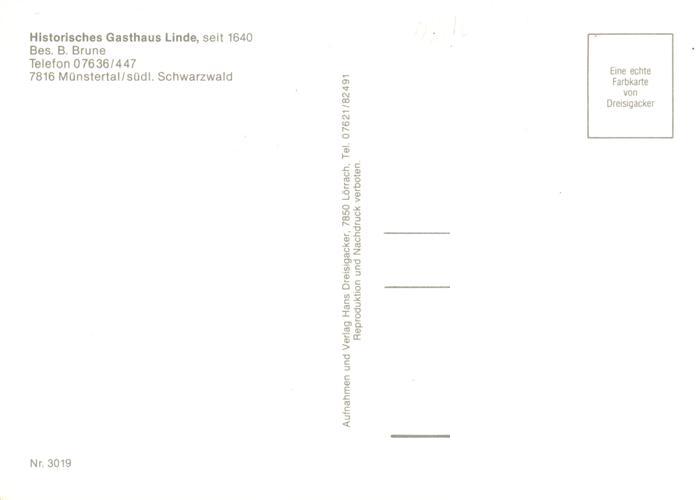 73934580 Muenstertal Schwarzwald Hist Gasthaus zur Linde Gastraeume Bar Panorama postalisch nicht gelaufen Erhaltung siehe scans [WerneD78] KatCode: 11110008315130