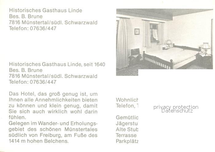 73023979 Muenstertal Schwarzwald Historisches Gasthaus zur Linde postalisch nicht gelaufen Werbekarte (keine Postkarte) Erhaltung siehe scans [KathaD81] KatCode: 11110008315130