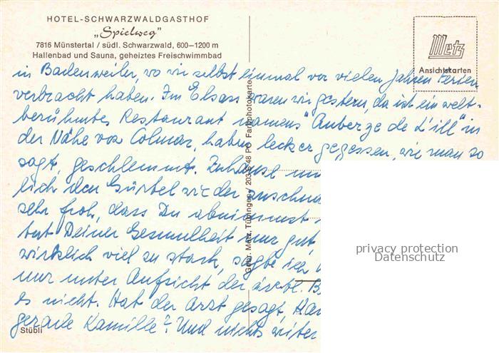 74040740 Muenstertal Schwarzwald Hotel Schwaldgasthof Spielweg Restaurant postalisch nicht gelaufen Erhaltung siehe scans [FriedD77] KatCode: 11110008315130