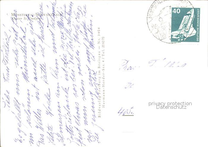 72349528 alte Postkarte Muenstertal Schwarzwald Kloster Sankt Trudpert postalisch gelaufen Erhaltung siehe scans KatCode: 11110008315130