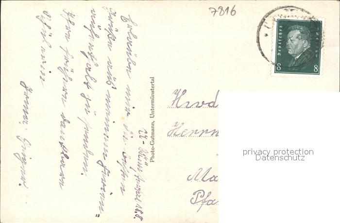 71912825 alte Postkarte Muenstertal Schwarzwald Kloster St Trudpert postalisch gelaufen Erhaltung siehe scans KatCode: 11110008315130