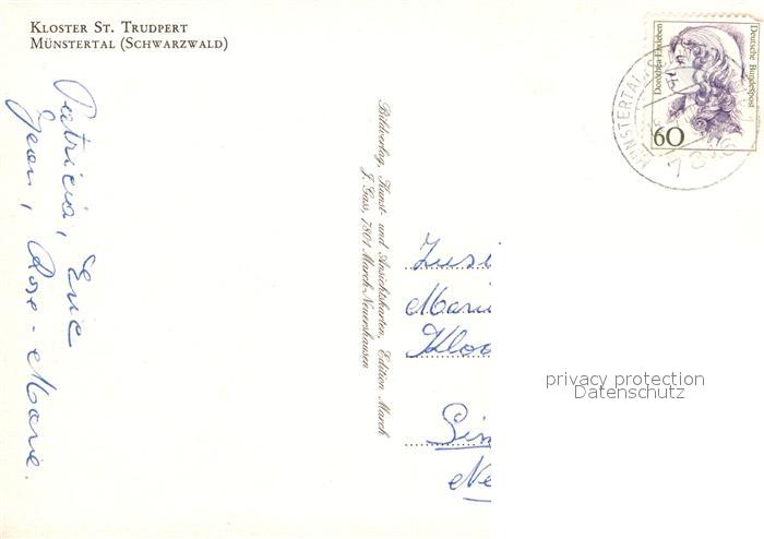 72933614 alte Postkarte Muenstertal Schwarzwald Kloster St Trudpert postalisch gelaufen Erhaltung siehe scans [WerneD78] KatCode: 11110008315130
