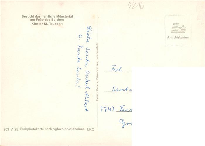 73929570 Muenstertal Schwarzwald Kloster St Trudpert Panorama postalisch nicht gelaufen Erhaltung siehe scans [WerneD78] KatCode: 11110008315130