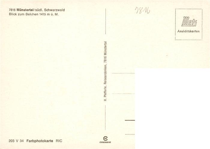 73934772 Muenstertal Schwarzwald mit Blick zum Belchen postalisch nicht gelaufen Erhaltung siehe scans [WerneD78] KatCode: 11110008315130