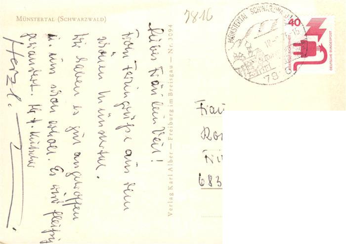 73934776 alte Postkarte Muenstertal Schwarzwald Panorama postalisch gelaufen Erhaltung siehe scans [WerneD78] KatCode: 11110008315130