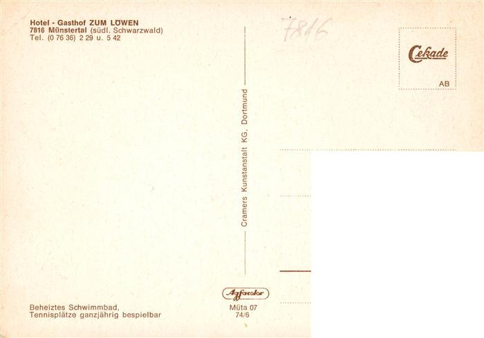 73934773 Muenstertal Schwarzwald Schwimmbad Panorama Gondelteich Gasthof zum Loewen Gaststube postalisch nicht gelaufen Erhaltung siehe scans [WerneD78] KatCode: 11110008315130