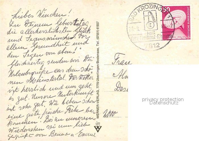 72819185 alte Postkarte Muenstertal Schwarzwald St Trudpert Gipfelkreuz Scharfenstein Felsen Landschaftspanorama Rathaus Minigolf postalisch gelaufen Erhaltung siehe scans [FriedD77] KatCode: 11110008315130