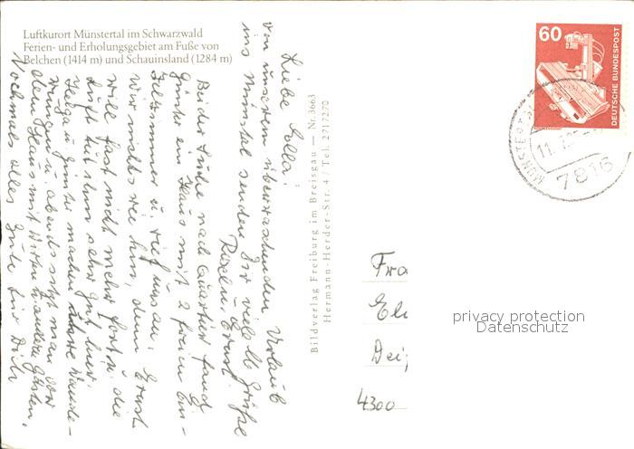 71913493 alte Postkarte Muenstertal Schwarzwald St Trudpert Panorama Neuhaeuser Rotenbuck Dekan Strohmeyer Haus postalisch gelaufen Erhaltung siehe scans KatCode: 11110008315130