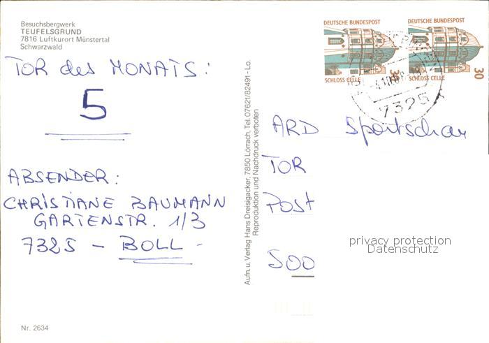 72377827 alte Postkarte Muenstertal Schwarzwald Teufelsgrund Bergwerk postalisch gelaufen Erhaltung siehe scans KatCode: 11110008315130