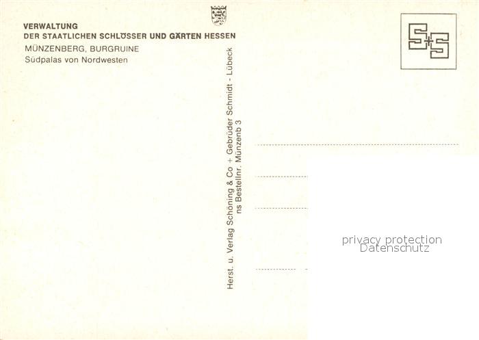 73211177 Muenzenberg Burgruine Suedpalais postalisch nicht gelaufen Erhaltung siehe scans [FriedD77] KatCode: 11110006440015