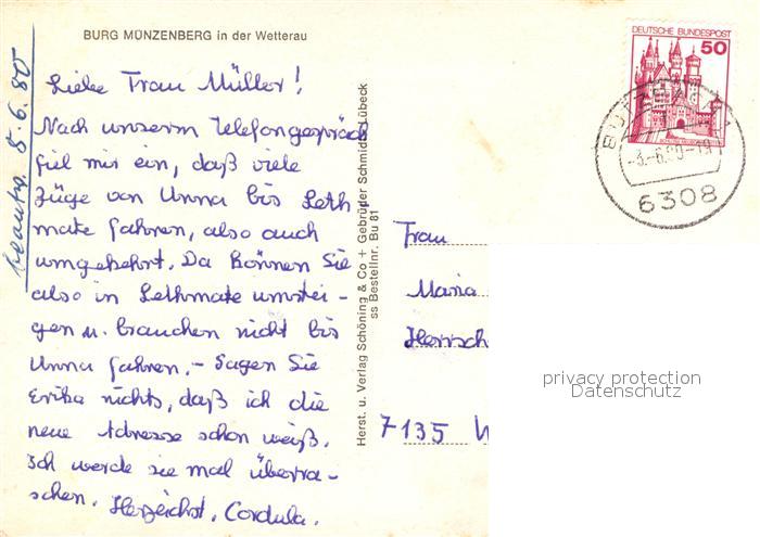 73211182 alte Postkarte Muenzenberg Burgruine postalisch gelaufen Erhaltung siehe scans [FriedD77] KatCode: 11110006440015