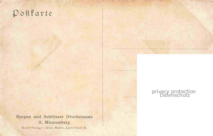 74009869 Muenzenberg Hessen Ansicht mit Burg Lanzendorf Kuenstlerkarte Serie Burgen und Schloesser Oberhessens Karte Nr. 9 postalisch nicht gelaufen Erhaltung siehe scans [FriedD77] KatCode: 11110006440015