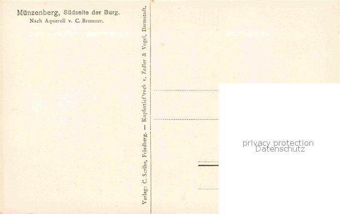 72706631 Muenzenberg Suedseite der Burg Kuenstlerkarte C. Bronner postalisch nicht gelaufen Erhaltung siehe scans [LiesaD40] KatCode: 11110006440015