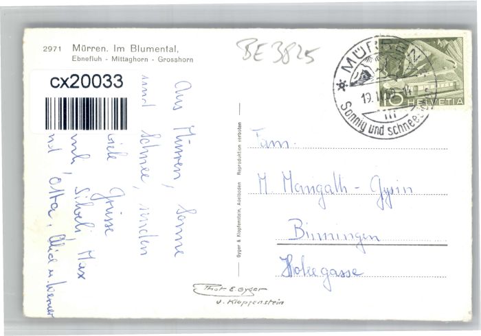 10737994 alte Postkarte Muerren BE Muerren Blumental postalisch gelaufen KatCode: 11470060175278
