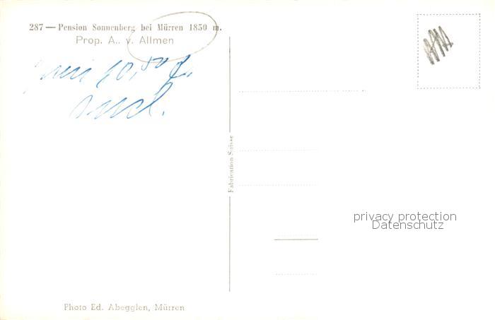 13794622 Muerren BE Pension Sonnenberg Aussenansicht postalisch nicht gelaufen Erhaltung siehe scans [LiesaD40] KatCode: 11470060175278