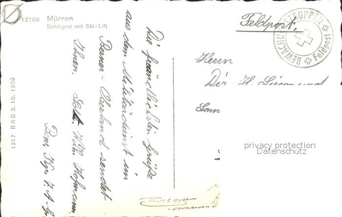 11837010 Muerren BE Schiltgrat Ski-Kift postalisch nicht gelaufen Feldpost Erhaltung siehe scans KatCode: 11470060175278