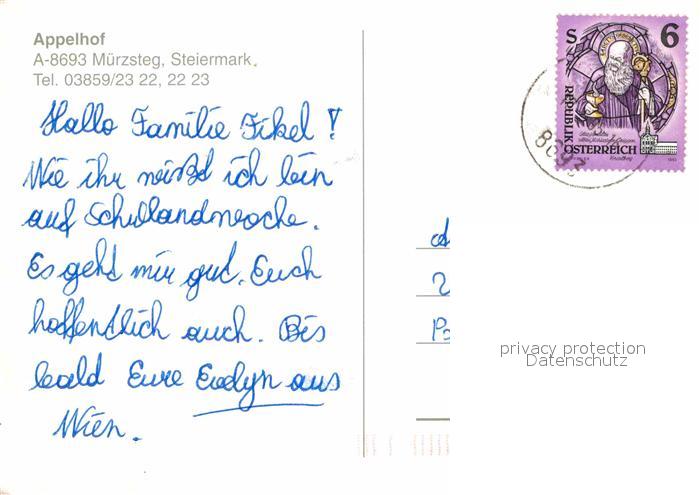 72699916 alte Postkarte Muerzsteg Appelhof Kinderhotel Kinderspielplatz postalisch gelaufen Erhaltung siehe scans [FriedD77] KatCode: 11390223061310