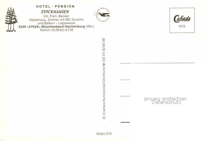 72730665 Mueschenbach Gasthaus Pension Stockhausen postalisch nicht gelaufen Erhaltung siehe scans [AndreD76] KatCode: 11110007143269