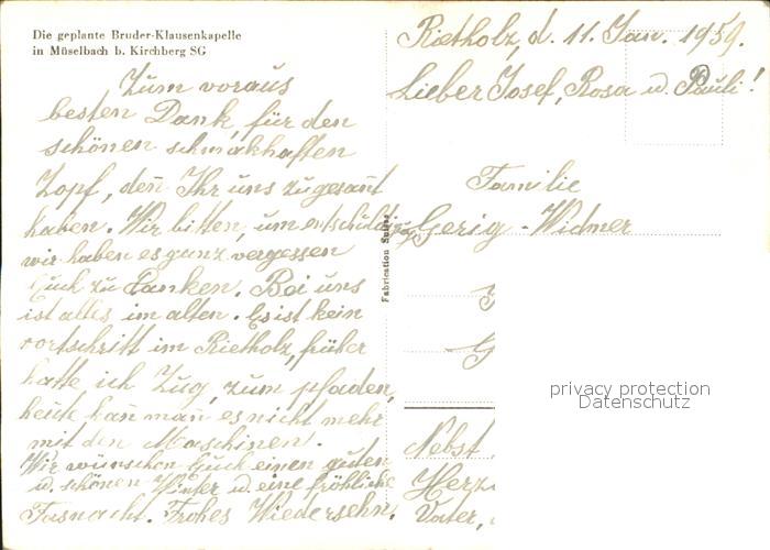 11853607 Mueselbach Zeichnung der geplanten Bruder Klaus Kapelle postalisch nicht gelaufen Erhaltung siehe scans KatCode: 11470190585790