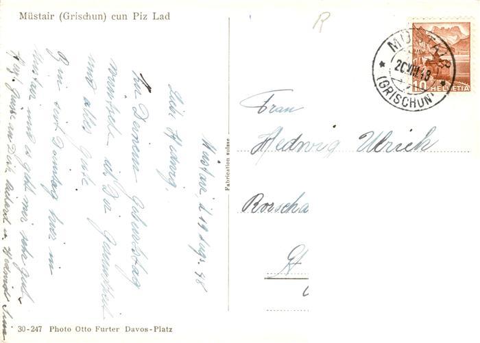 13889435 alte Postkarte Muestair GR Cun Piz Lad postalisch gelaufen Erhaltung siehe scans [WerneD78] KatCode: 11470100325146