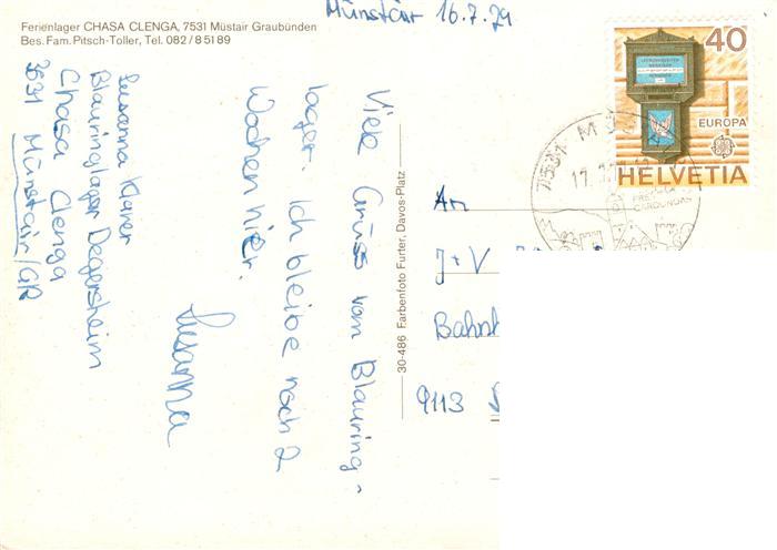 13889433 alte Postkarte Muestair GR Ferienlager Chasa Clenga Bettenlager Panorama Gaststube postalisch gelaufen Erhaltung siehe scans [WerneD78] KatCode: 11470100325146