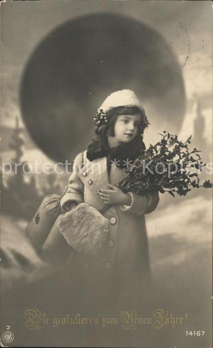 alte Postkarte Muff Kind Maedchen Neujahr Foto-NPG-Nr. 14167 postalisch gelaufen