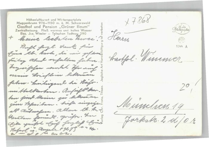 40734525 Muggenbrunn Gasthof Pension Grüner Baum KatCode 11110008336087