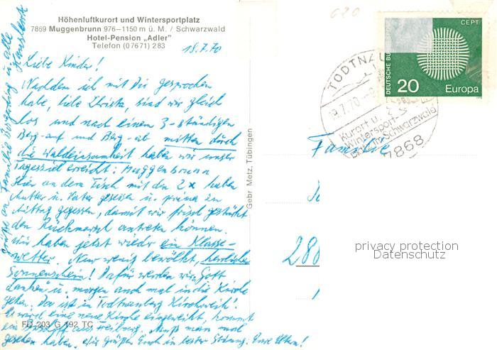 73858802 alte Postkarte Muggenbrunn Hoehenluftkurort Hotel Pension Adler Restaurant postalisch gelaufen Erhaltung siehe scans [FriedD77] KatCode: 11110008336087