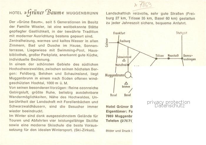 73844769 Muggenbrunn Hotel Gruener Baum Gaststuben Terrasse postalisch nicht gelaufen Werbekarte (keine Postkarte) Erhaltung siehe scans [WerneD78] KatCode: 11110008336087
