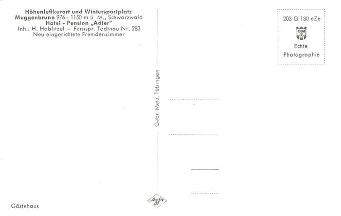 74014706 Muggenbrunn Hotel Pension Adler postalisch nicht gelaufen Erhaltung siehe scans [WerneD78] KatCode: 11110008336087
