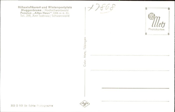 40805588 Muggenbrunn Schwarzwald Todtnau Pension Altes Haus postalisch nicht gelaufen Alte Ansichtskarte Postkarte Katcode 11110008336087