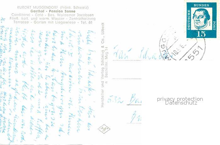 72897514 alte Postkarte Muggendorf Fraenkische Schweiz postalisch gelaufen Erhaltung siehe scans [PaolaD17] KatCode: 11110009474176