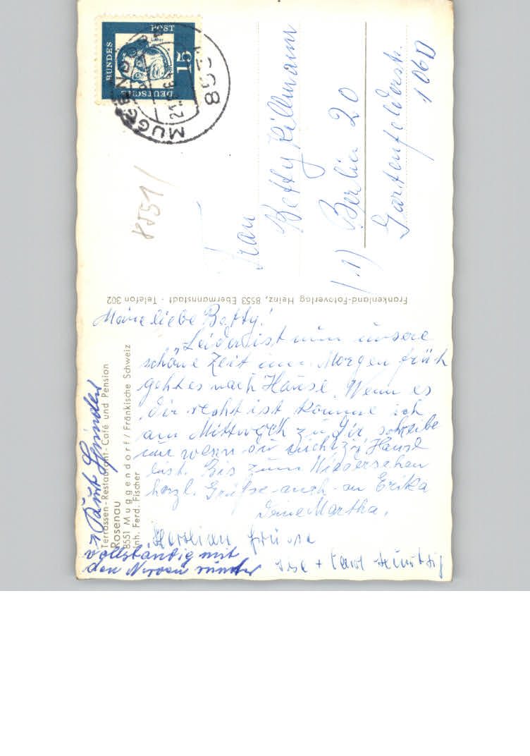 11168437 Muggendorf Fraenkische Schweiz Cafe Restaurant Pension Rosenau postalisch nicht gelaufen KatCode: 11110009474176