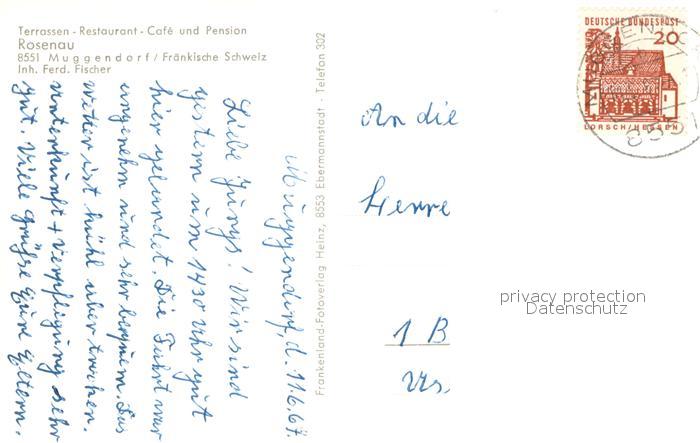 73649866 alte Postkarte Muggendorf Fraenkische Schweiz Cafe Restaurant Pension Rosenau Panorama Terrasse postalisch gelaufen Erhaltung siehe scans [WerneD78] KatCode: 11110009474176
