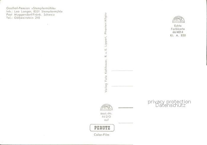 72548841 Muggendorf Fraenkische Schweiz Gasthaus Pension Stempfermuehle postalisch nicht gelaufen Erhaltung siehe scans [LiesaD40 kv021box] KatCode: 11110009474176