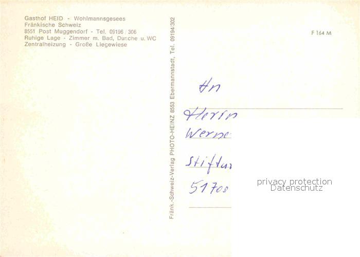 72898368 Muggendorf Fraenkische Schweiz Gasthof Heid Wohlmannsgesees postalisch nicht gelaufen Erhaltung siehe scans [AndreD76] KatCode: 11110009474176