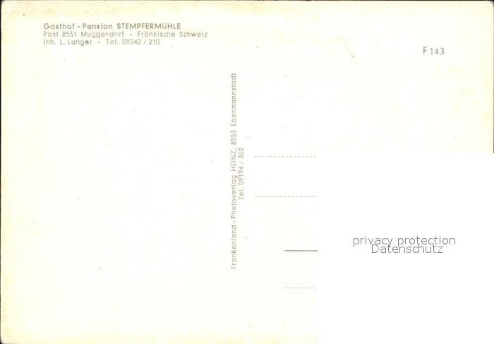 72457360 Muggendorf Fraenkische Schweiz Gasthof Pension Stempermuehle an der Wiesent Kanu postalisch nicht gelaufen Erhaltung siehe scans KatCode: 11110009474176