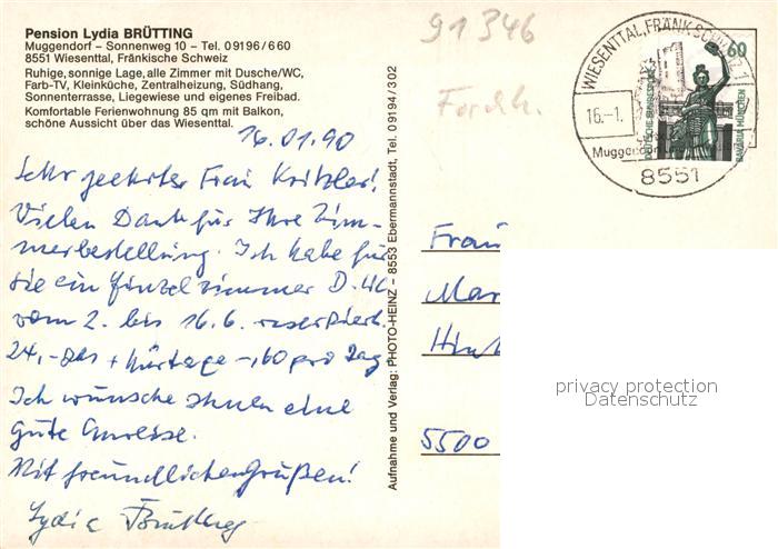 73100067 alte Postkarte Muggendorf Fraenkische Schweiz Pension Bruetting Swimmingpool Zimmer postalisch gelaufen Erhaltung siehe scans [WerneD78] KatCode: 11110009474176