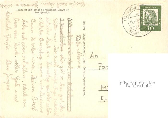73781595 alte Postkarte Muggendorf Fraenkische Schweiz Teilansichten Panorama Hoehle Burgruine postalisch gelaufen Erhaltung siehe scans [FriedD77] KatCode: 11110009474176