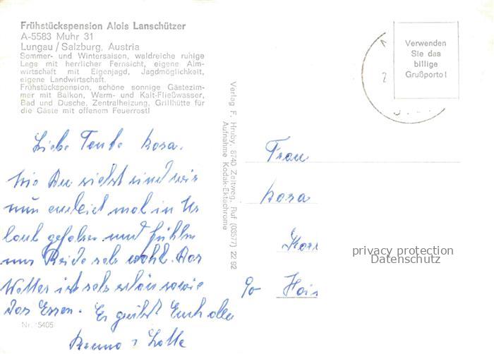74026334 alte Postkarte Muhr Lungau AT Pension Lanschuetzer Kaminzimmer Treppenaufgang Ortsansicht mit Kirche postalisch gelaufen Erhaltung siehe scans [FriedD77] KatCode: 11390321050505