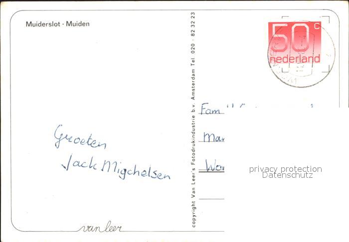old postcard Muiderslot Muiden postalisch gelaufen Erhaltung siehe scans