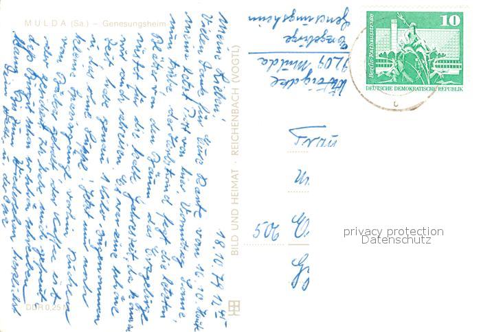73612794 alte Postkarte Mulda Sachsen Genesungsheim postalisch gelaufen Erhaltung siehe scans [WerneD78] KatCode: 11110014177290