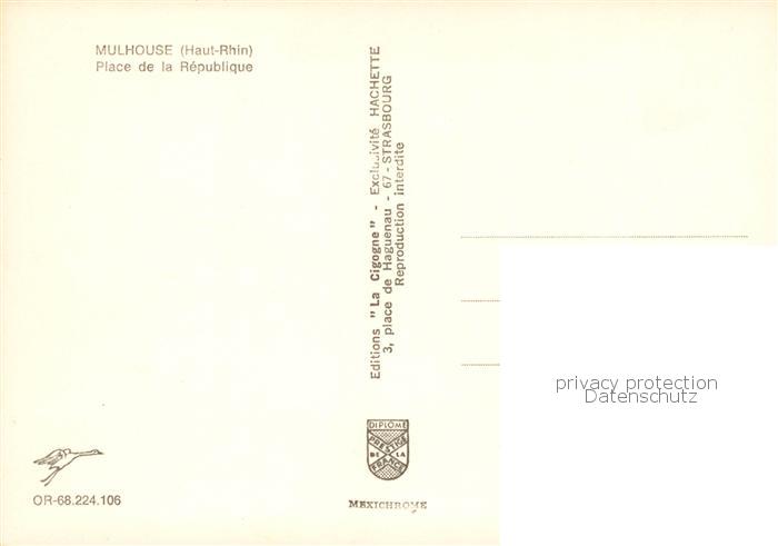 13864635 Mulhouse Muehlhausen 68 Alsace Place de la Republique postalisch nicht gelaufen Erhaltung siehe scans [WerneD78] Wern Katcode 11170068468224