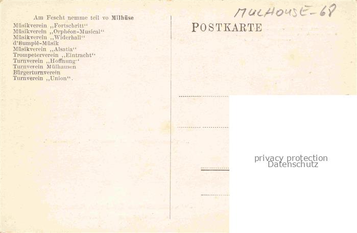 34146433 MULHOUSE Muehlhausen 68 Haut-Rhin Tracht der Umgebung Orpheon Musical Fortschritt Widerhall Els Lothr Musikbund 1907 postalisch nicht gelaufen Erhaltung siehe scans [WerneD78] KatCode: 11170068468224