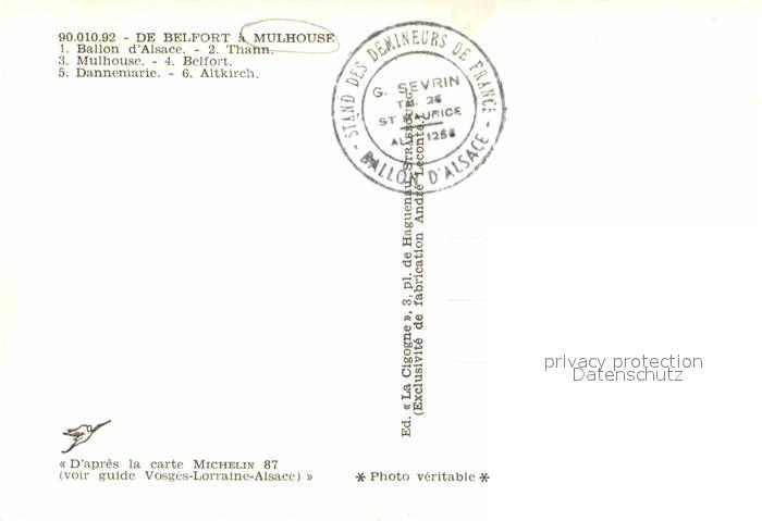 12698356 carte postale Mulhouse Muehlhausen Ballon d Alsace Thann Mulhouse Belfort Dannemarie Altkirch postalisch gelaufen Erhaltung siehe scans [WerneD78] KatCode: 11170068468224