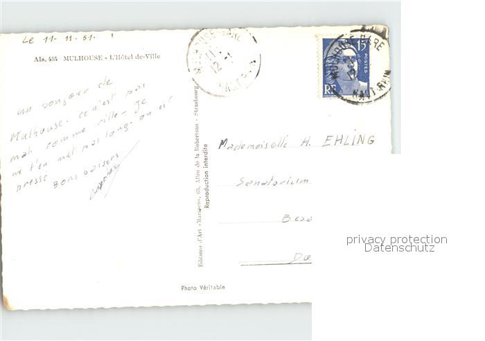 12259039 carte postale Mulhouse Muehlhausen Hotel de Ville postalisch gelaufen Erhaltung siehe scans KatCode: 11170068468224